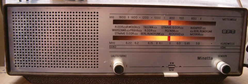 Az ideológiailag tiszta rádió. Csak a "szocialista" országok adóit fogta - legalábbis a skálafelirat szerint. Tökéletes állapotban, nem recseg, nem füttyög, formás, pofás DDR RFT műanyag kivitel. Egy apró baja azért lehet, akárhogy tekergetem, a "Stimme der DDR" sehogy sem akar mostanában bejönni rajta... :) Bár akkoriban még az ideológiailag legszilárdabb keletnémetek sem gondolták, hogy országukról egyszer memóriamodulokat fognak elnevezni.