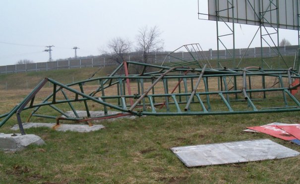 Vihar által tönkretett óriás reklámtábla Biatorbágynál